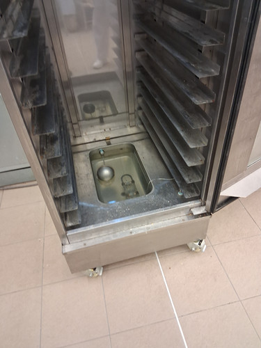 Rozsdamentes acél mobil kelesztő kamra. A berendezés az aljában elhelyezett víztartályt automatikusan feltölti vízzel és ezt párologtatja el.  Anyaga kívül belül AISI204 rozsdamentes acél.